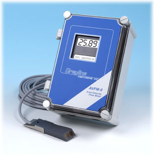 The AVFM-II uses a submerged ultrasonic sensor to continuously measure both Velocity and Level in the channel. The sensor is a completely sealed ultrasonic unit with no orifices or ports. It mounts inside a pipe or at the bottom of a rectangular, trapezoid or egg-shaped channel. Calibration is simple: enter the pipe diameter or channel width and the AVFM-II computes the flow volume and displays the flow rate.
